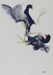 2026Waterhoentjes in gevecht met elkaar in de lucht.